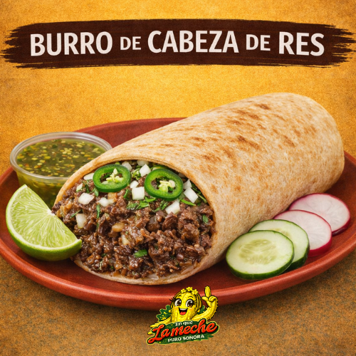 Burro de Cabeza de Res en tortilla grande de harina, con verduras/salsas aparte