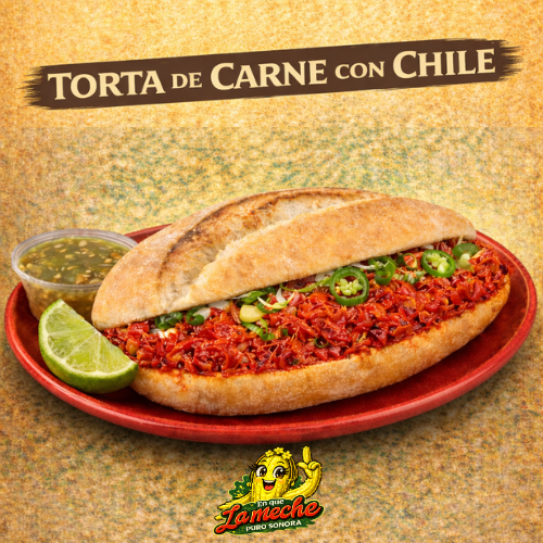 1 Torta de Carne con Chile en Birote, acompañado de verduras/salsas aparte.