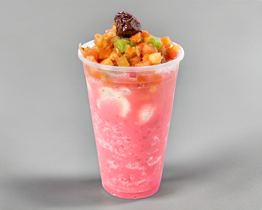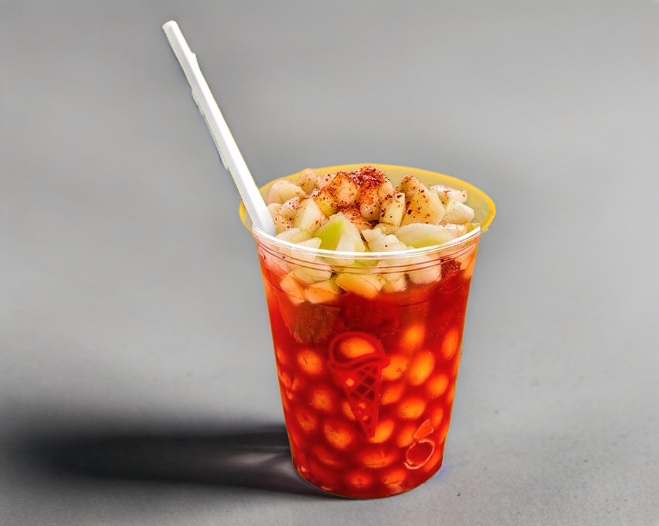 Raspado sabor picafresa, con nieve de chamoy, chilito en polvo y picafresas.