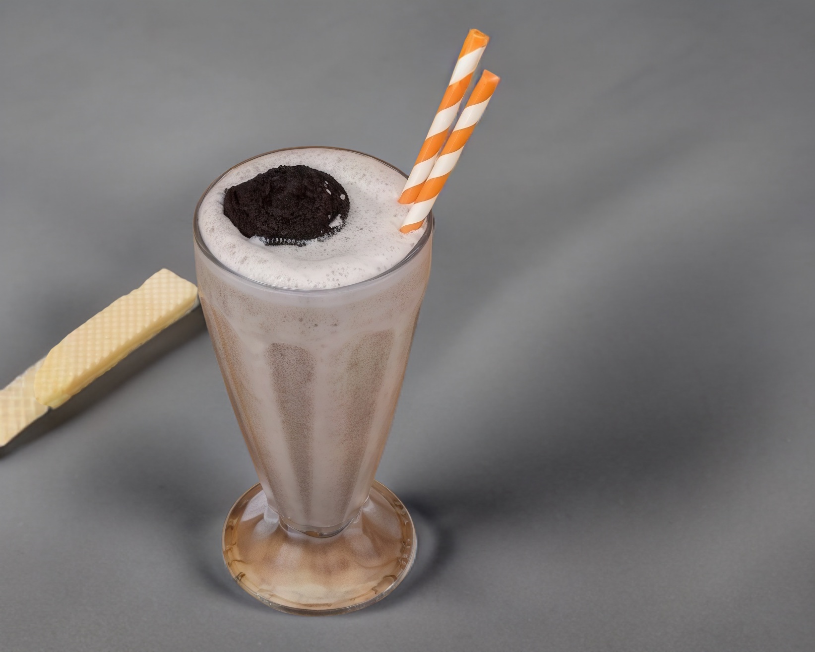 Malteada base de vainilla color azul,sabor galleta oreo. 16 oz.