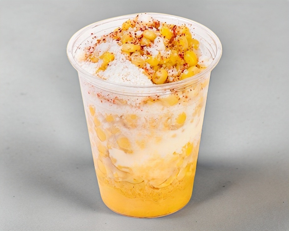 Cóctel de grano de elote, mantequilla, crema y queso blanco en polvo, 12 oz.