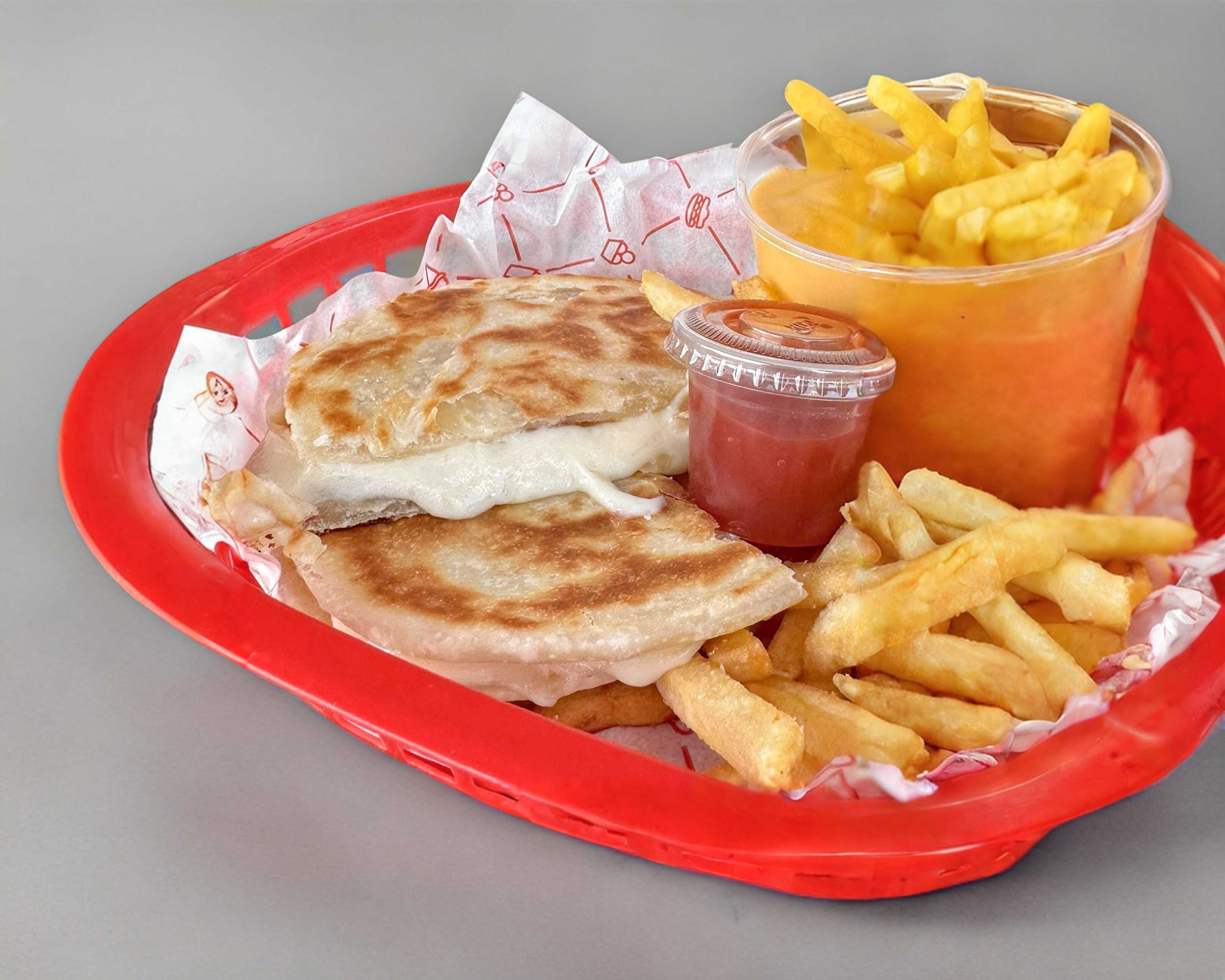 Quesadilla con 2 tortillas gorditas de harina y queso chihuahua.