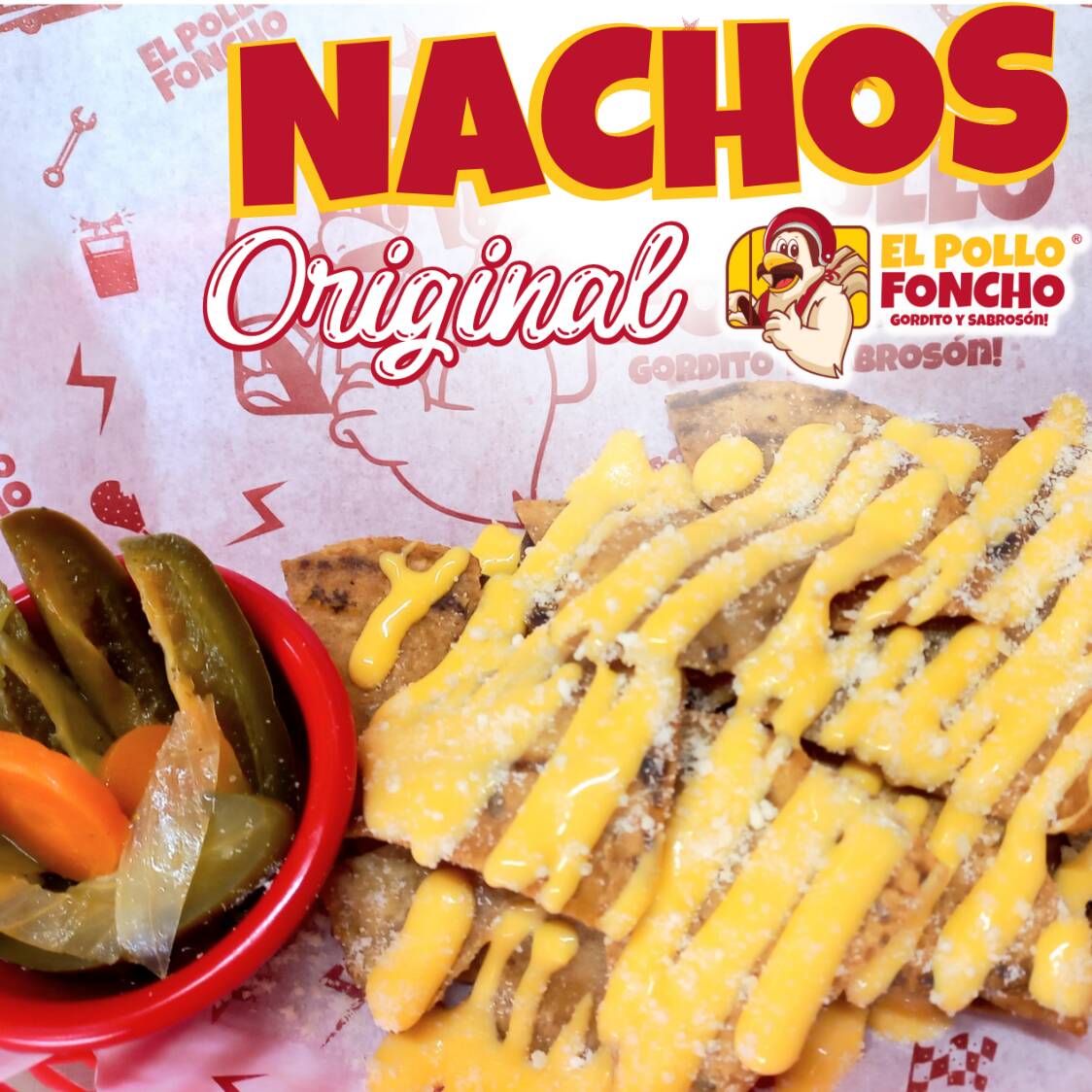 Totopos, Queso cheddar, cotija, Crema, Jalapeño y Boneless
