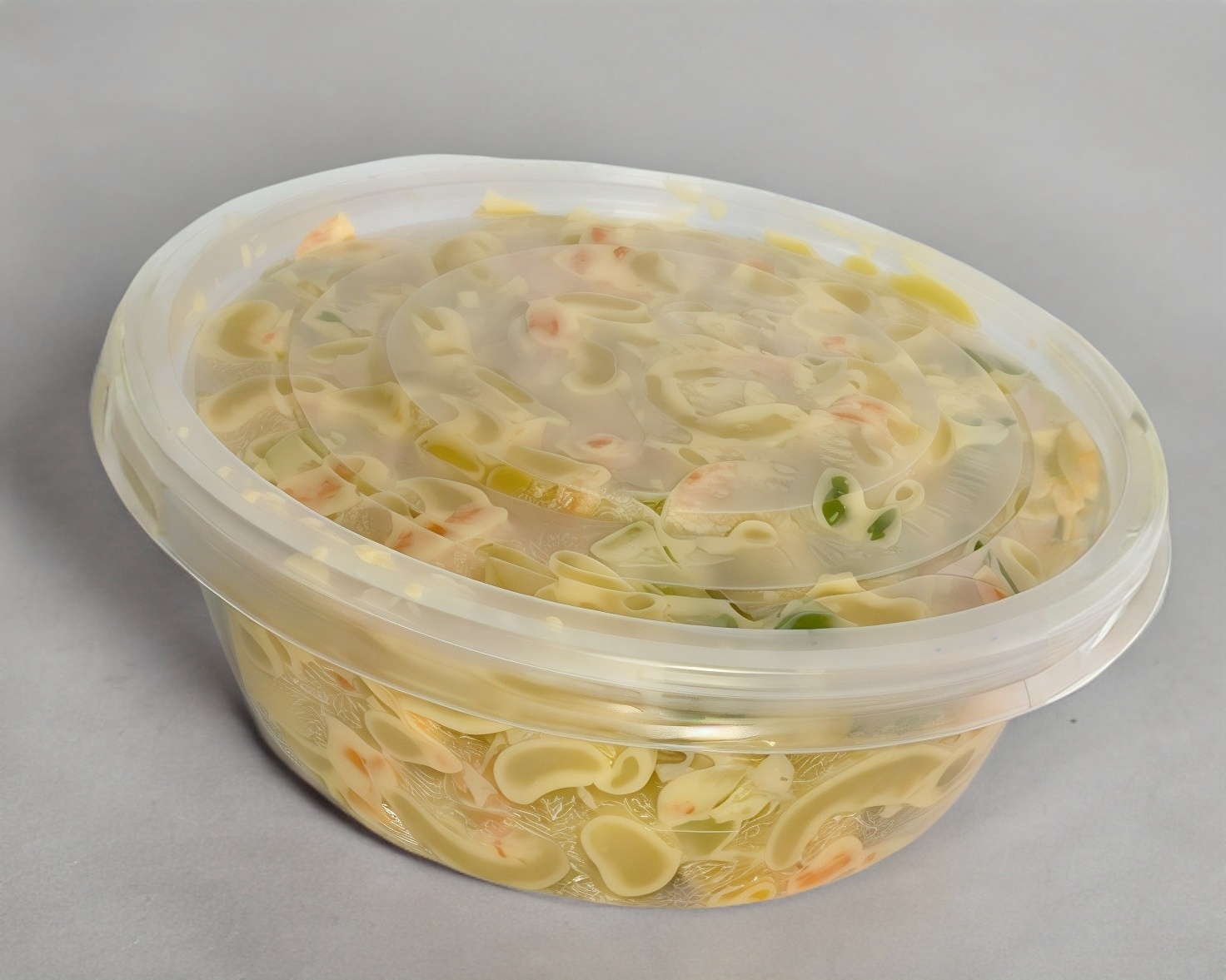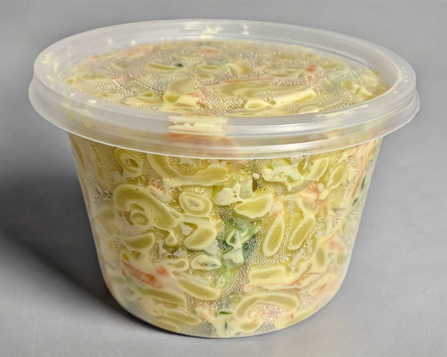 Sopa preparada con zanahoria, apio, granos de elote y un toque de sal y consomé, mezclada con mayonesa y media crema