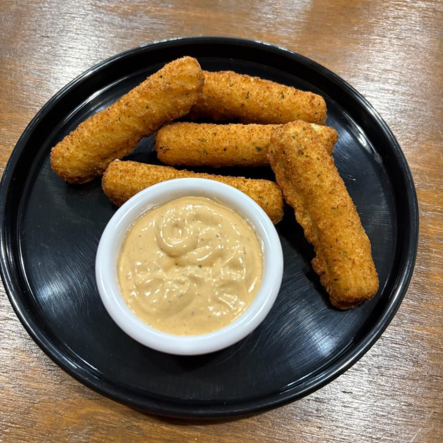 5 piezas de dedos de queso acompañados de aderezo de la casa.