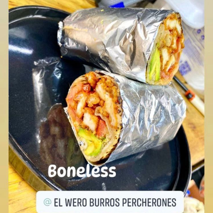 Mayonesa, aguacate, tomate, diezmillo, adobada, boneless bufalo BBQ y queso.