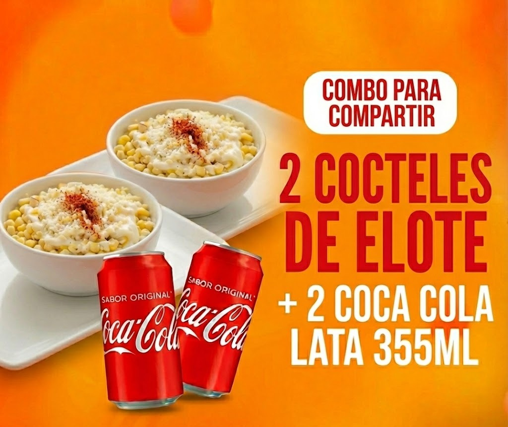 Combo 2 (2 Cocteles Elote Grande + 2 Cocas Lata)