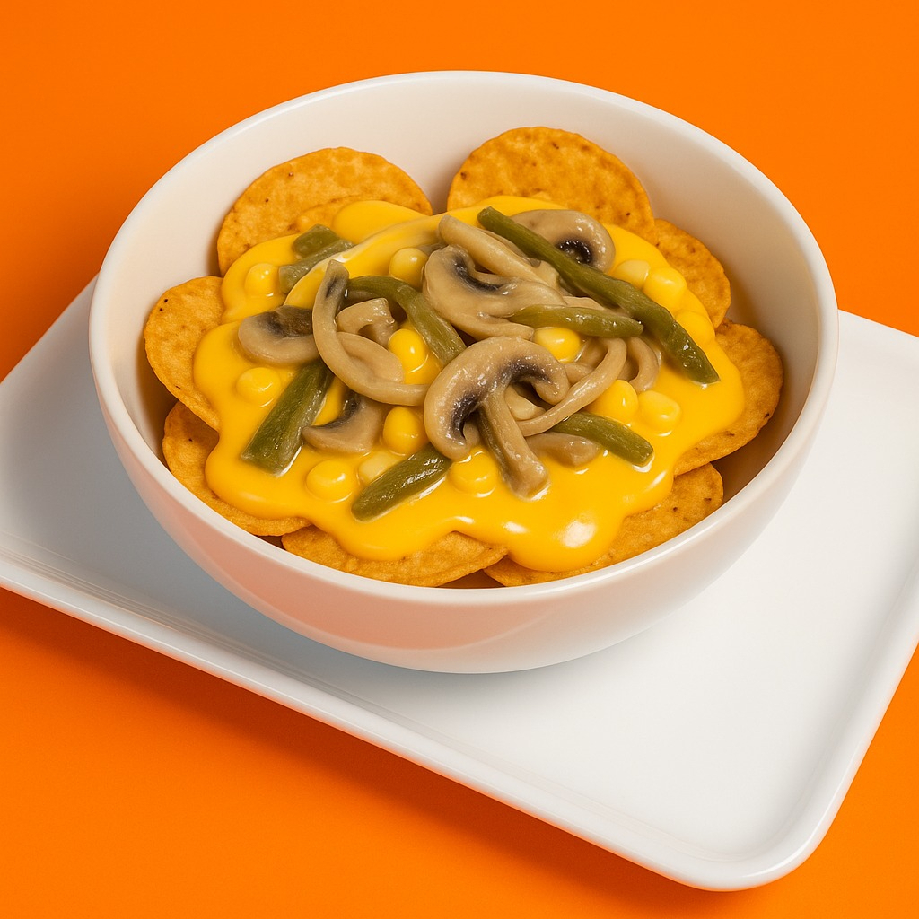 Tostitos con rajas, champiñón, queso amarillo y elote.
