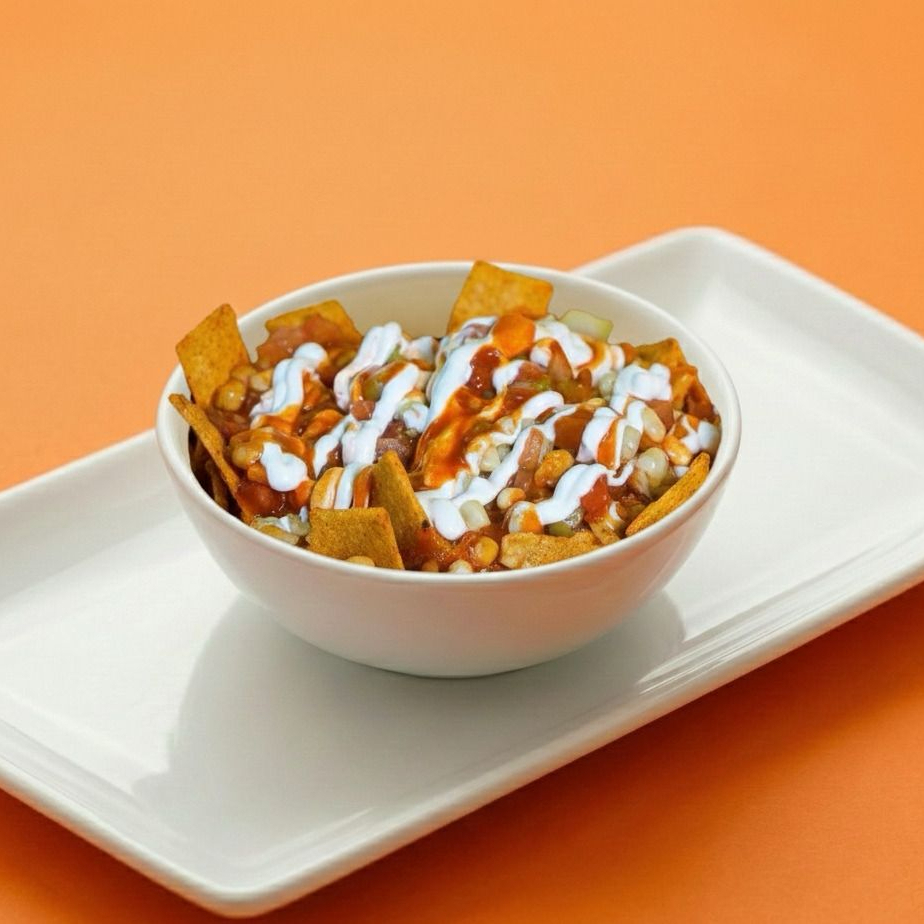 Tostitos con rajas, champiñón, queso amarillo y elote.