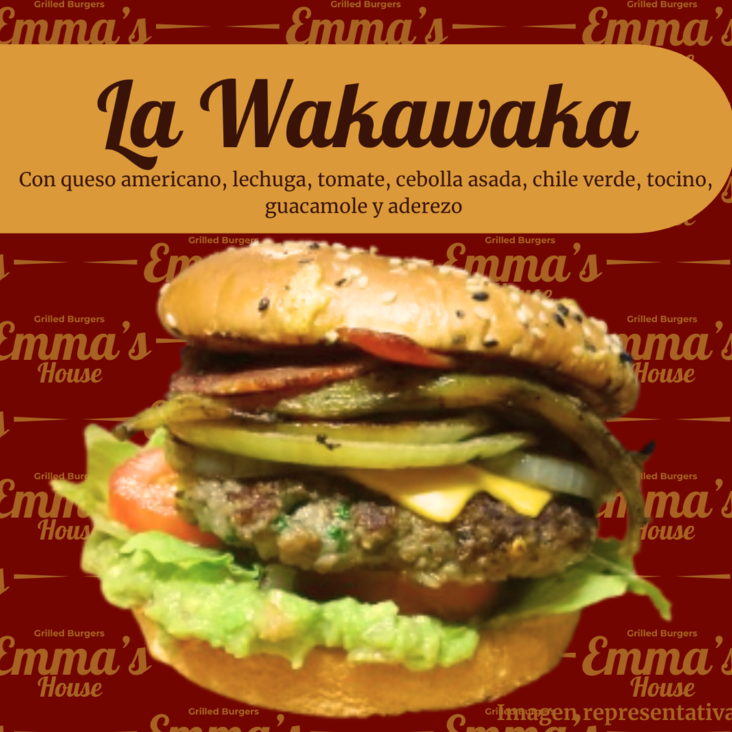Con queso americano, lechuga, tomate, cebolla asada, chile verde, tocino, guacamole y aderezo