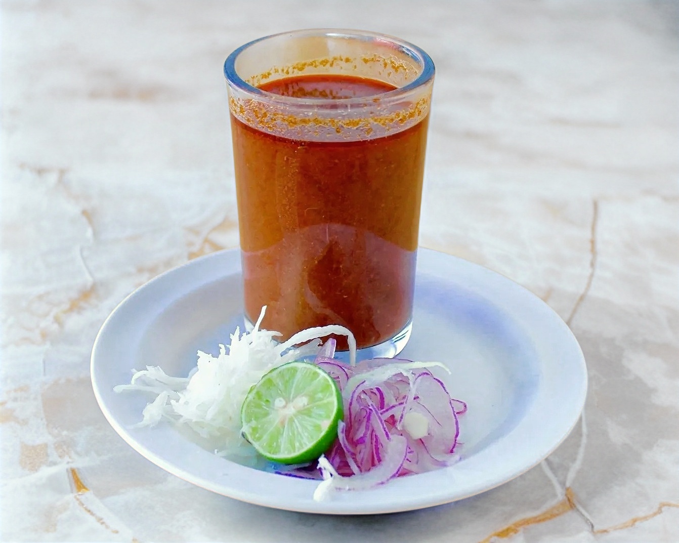 Orden de medio litro de cahuamanta con camarón, Incluye repollo, tomate, cebolla morada, limones, totopos y tortillas de maíz.