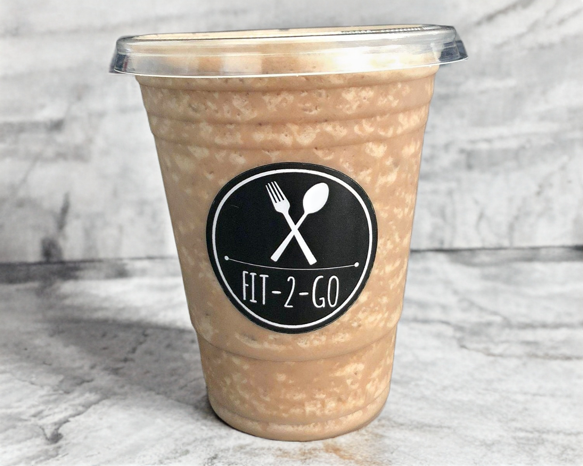 Café cold brew, leche de coco, crema de cacahuate y proteína de chocolate, servido en las rocas.