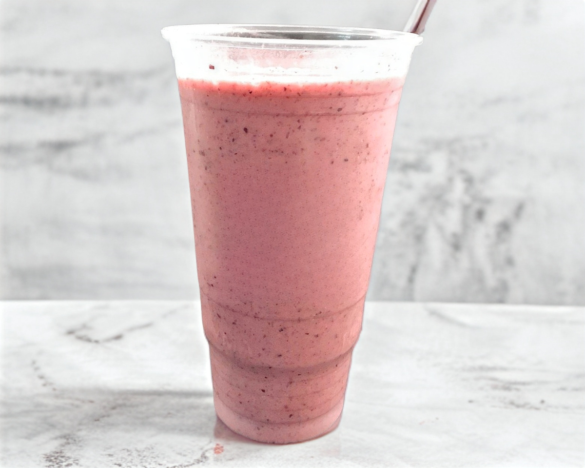 Leche, acai, plátano y mix de berries.