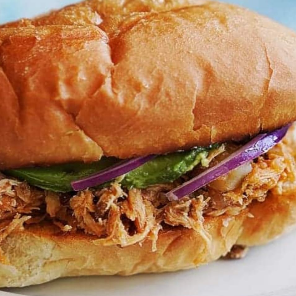 Pechuga de pollo, queso panela, cebolla morada, aguacate, lechuga, mostaza miel y aderezo chipotle.