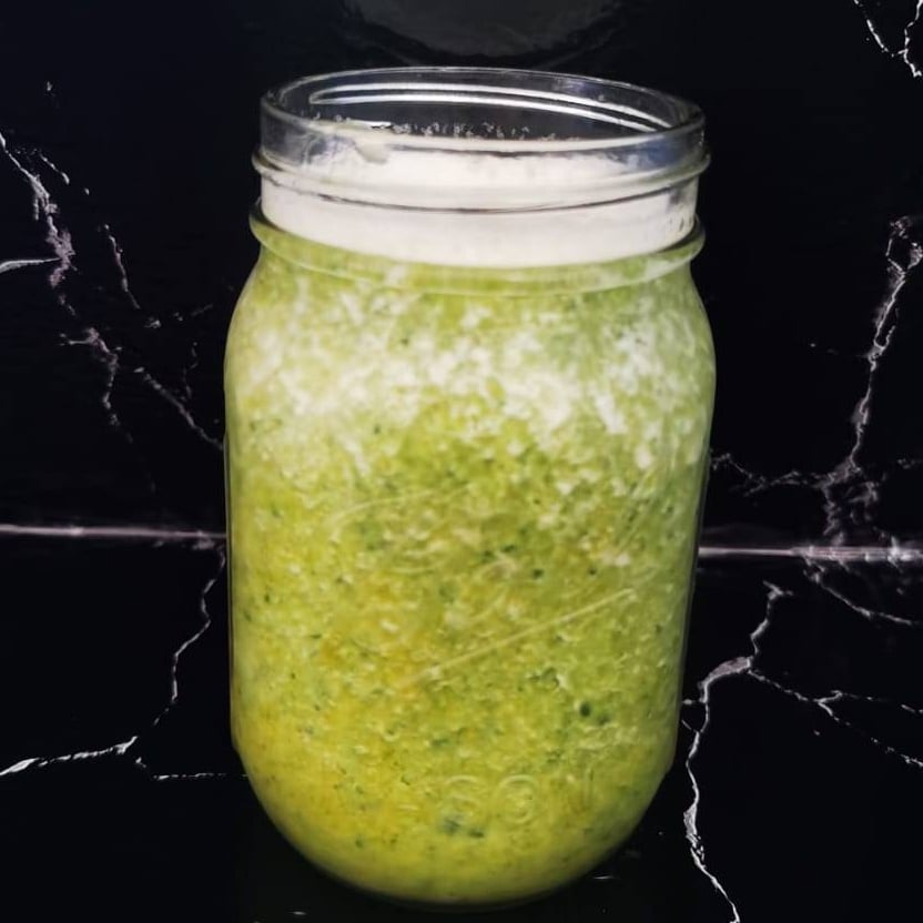 Base jugo de naranja con manzana verde, espinaca, lechuga, pepino y limón.
