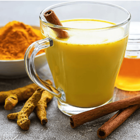 Leche entera, cúrcuma, canela, jengibre, cayena y vainilla.