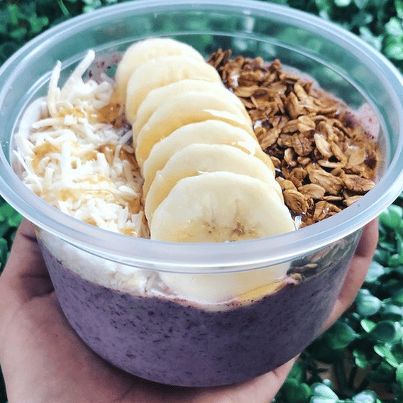 Leche de tu preferencia, acai, plátano y mix de berries.