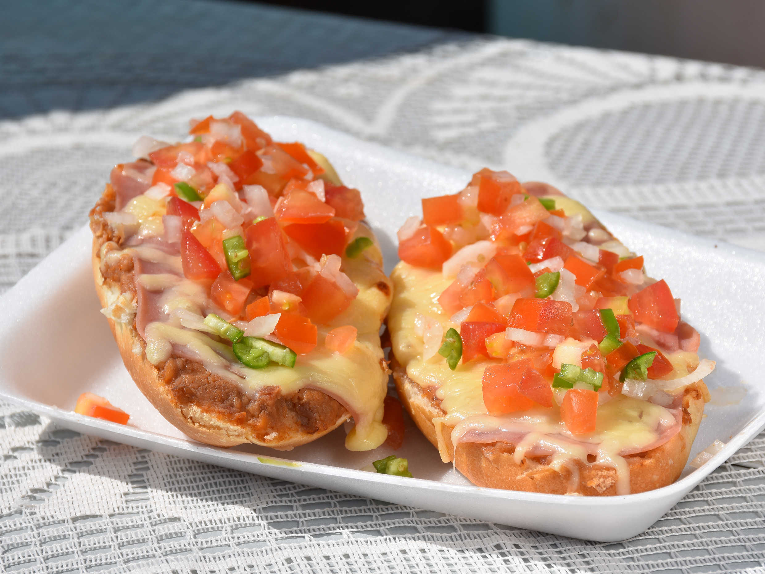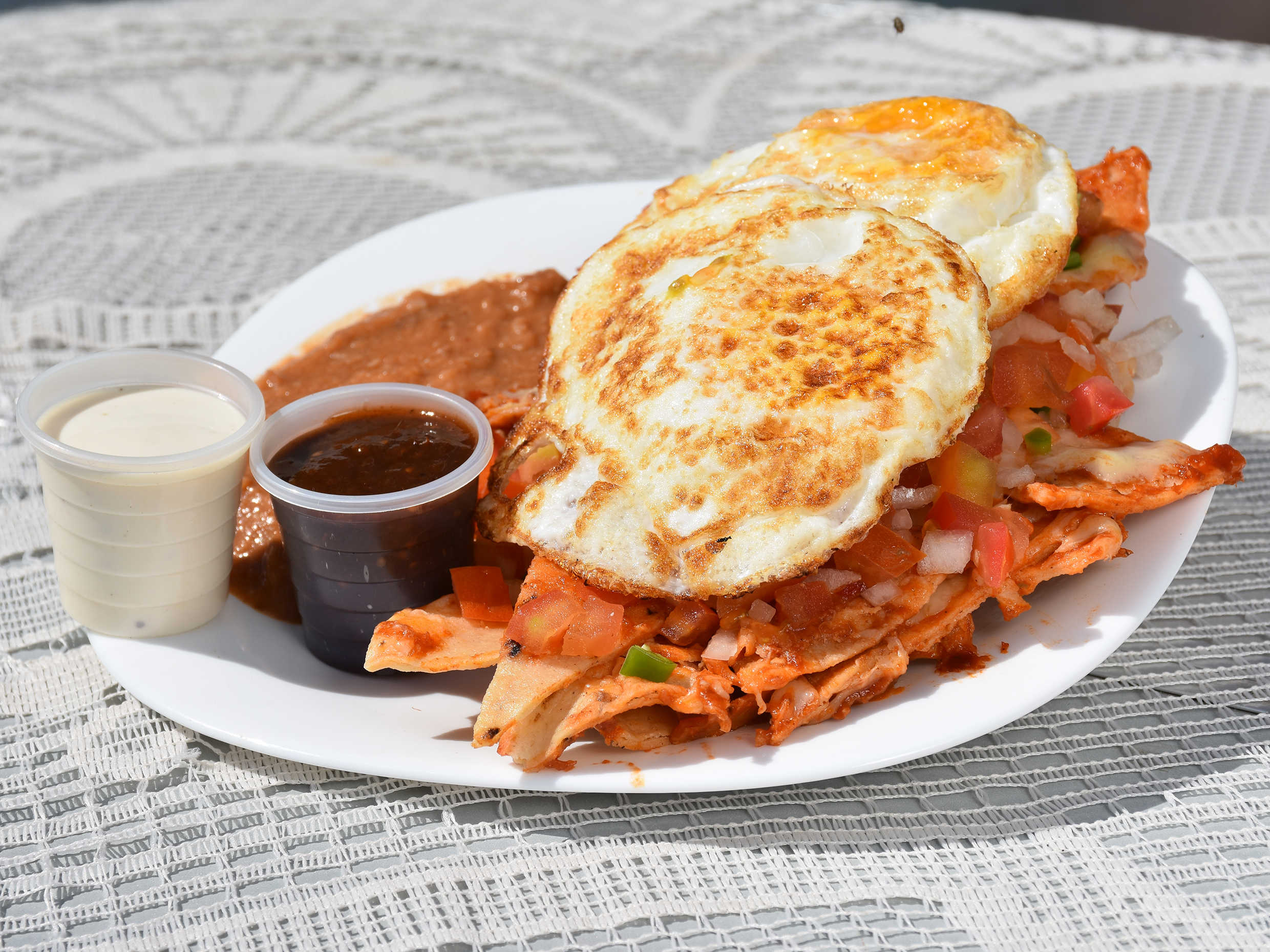 Deliciosa salsa a elegir, queso Chihuahua, pollo o huevo, acompañados de salsa bandera, media crema y frijoles