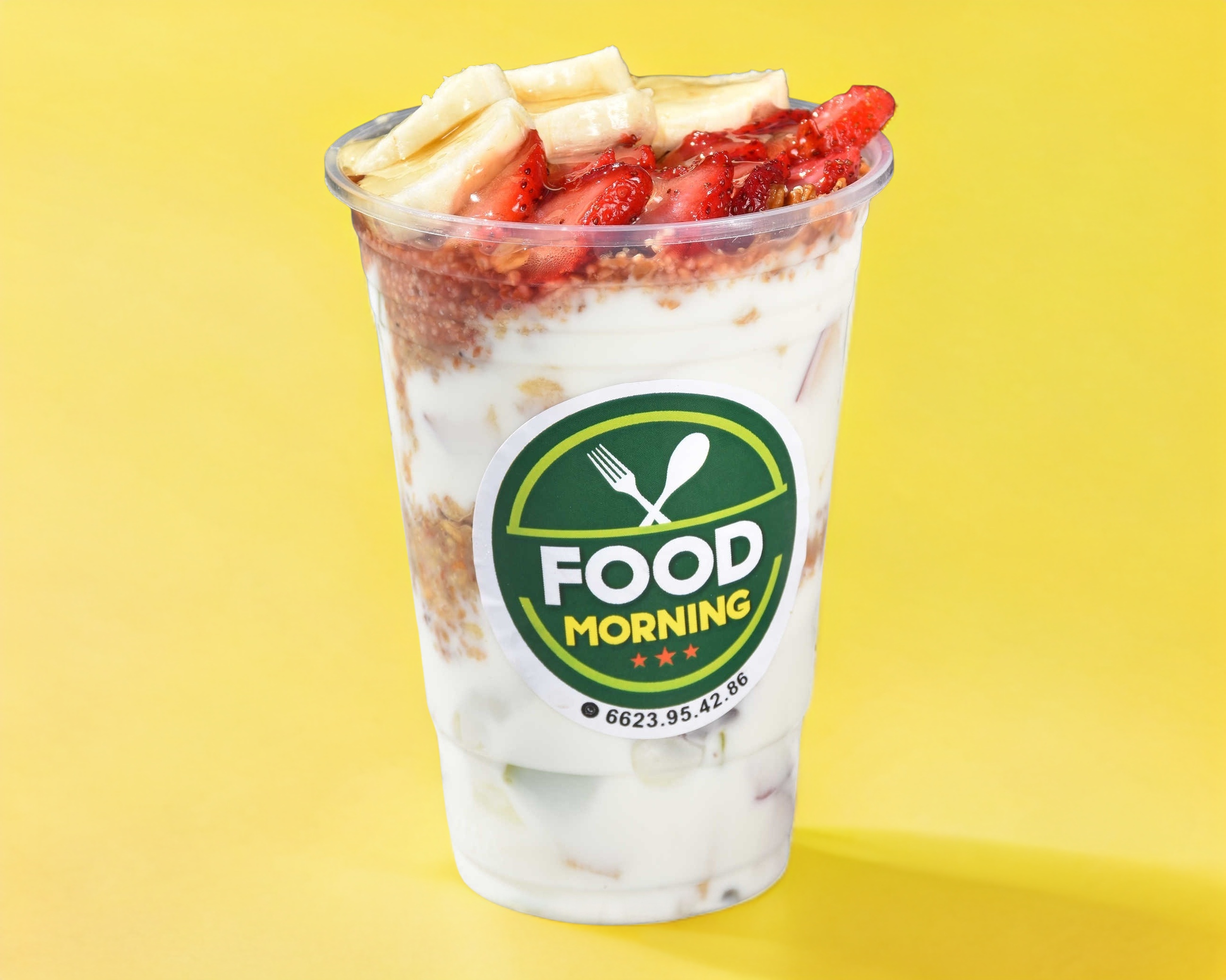 Manzana, pera, melón, platano yogurt natural, granola, miel