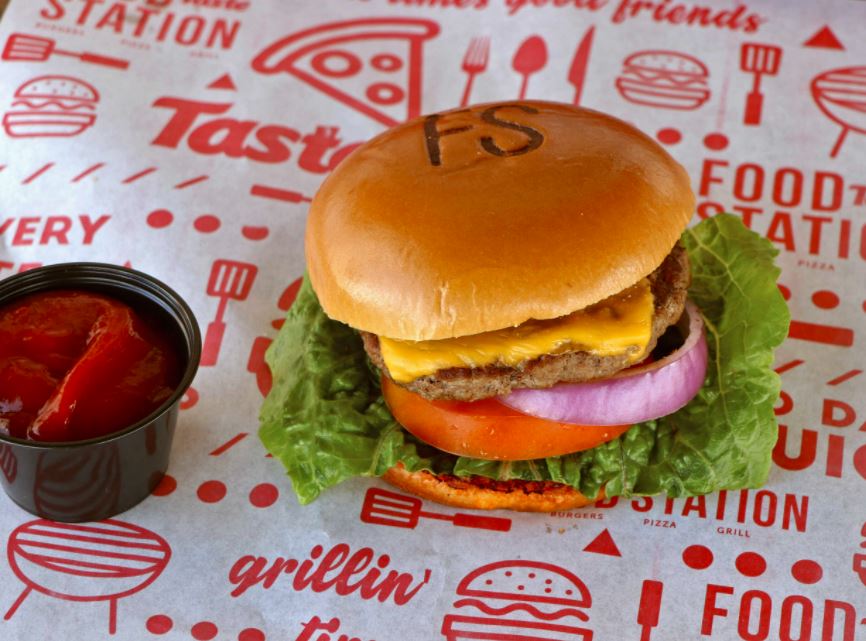 Hamburguesa Deli, con carne de 110 grs calidad Rancho el 17, lechuga, tomate y cebolla morada y aderezo de la casa