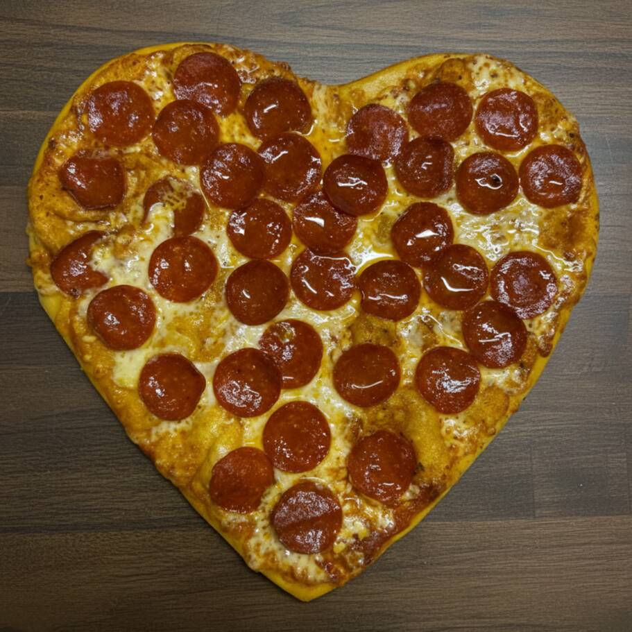 Pepperoni, tocino, pimiento, champiñón y aceituna negra.