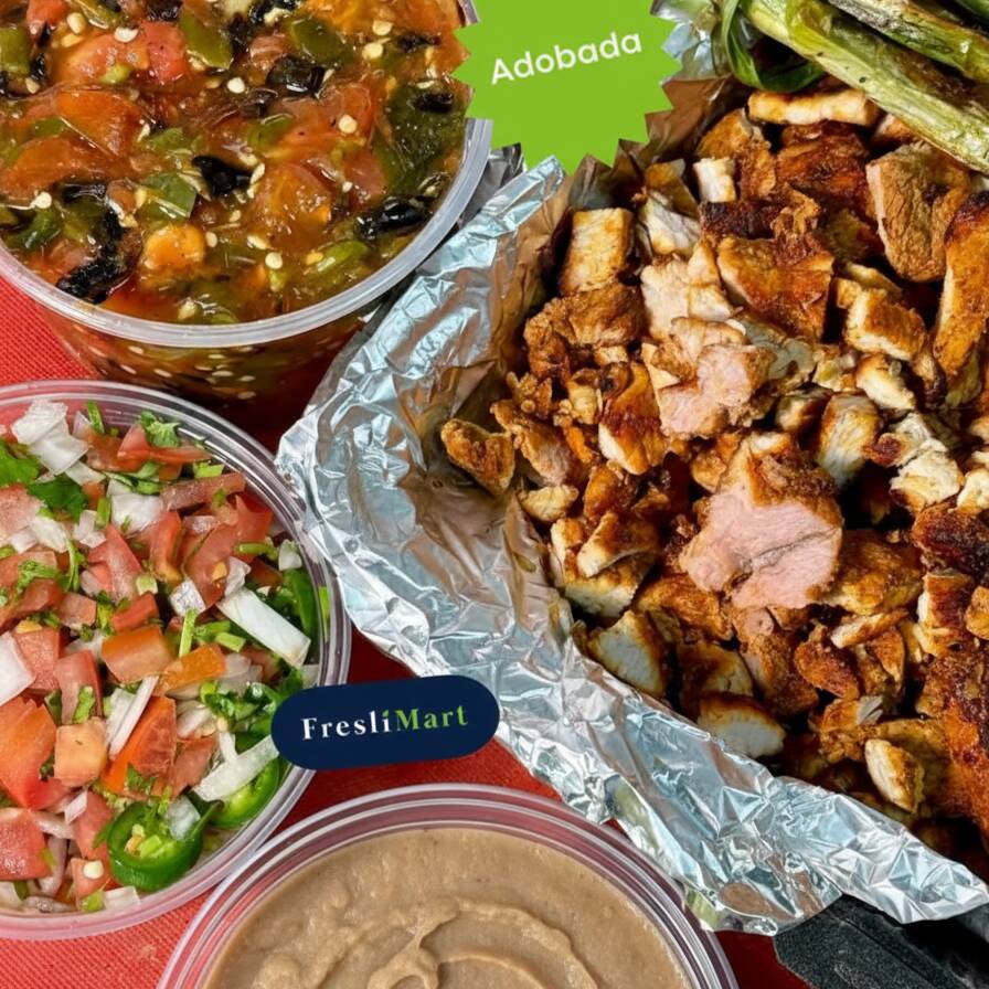 Paquete familar. Incluye 1 kg de carne para asar, 1kg de pechuga de pollo, 1/4lt de guacamole, 1/4lt de salsa tatemada, 1 paquete de tortillas taqueras, 1 mazo de cebolla cambray y 1 coca cola de 3lt