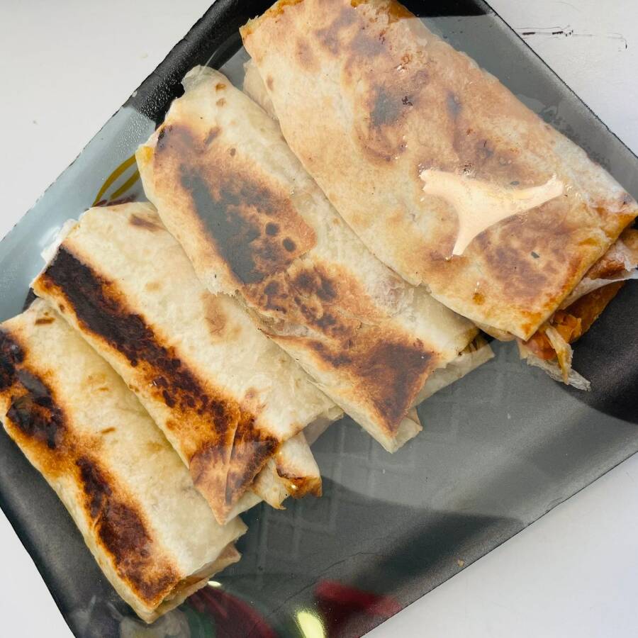 4 burritos de tortilla de harina: 3 de guiso del día y 1 de frijol