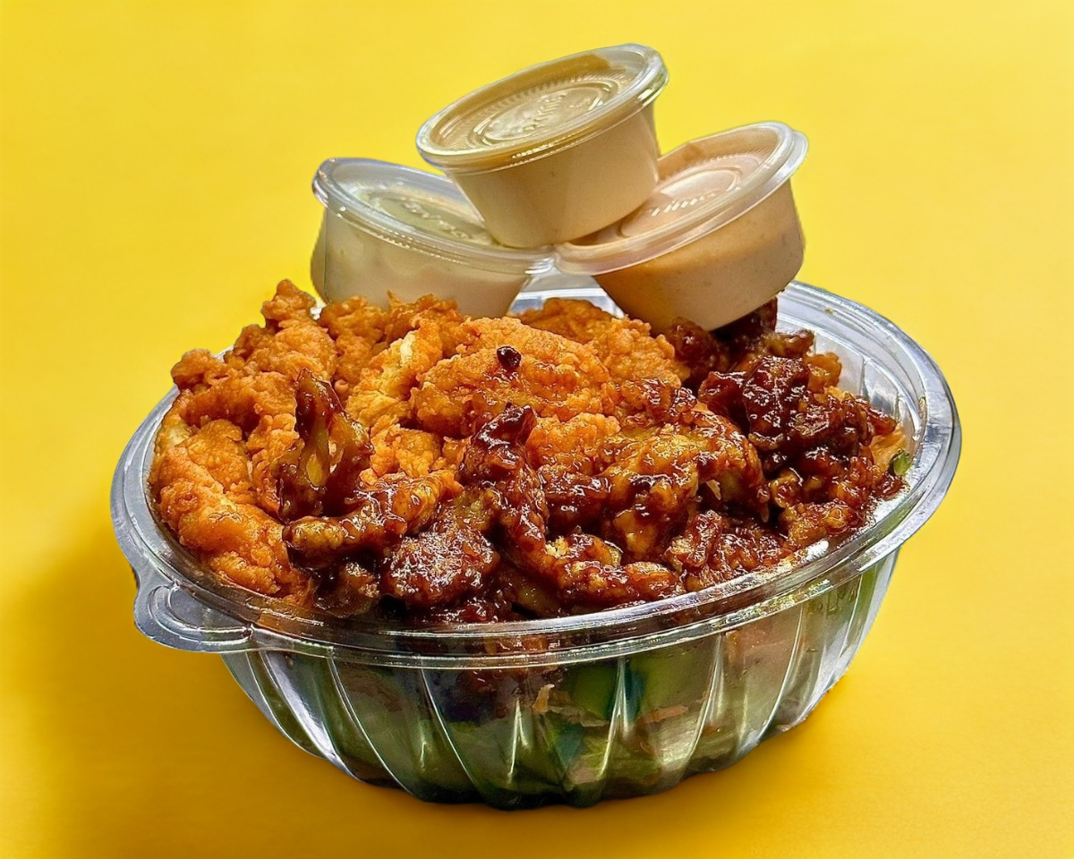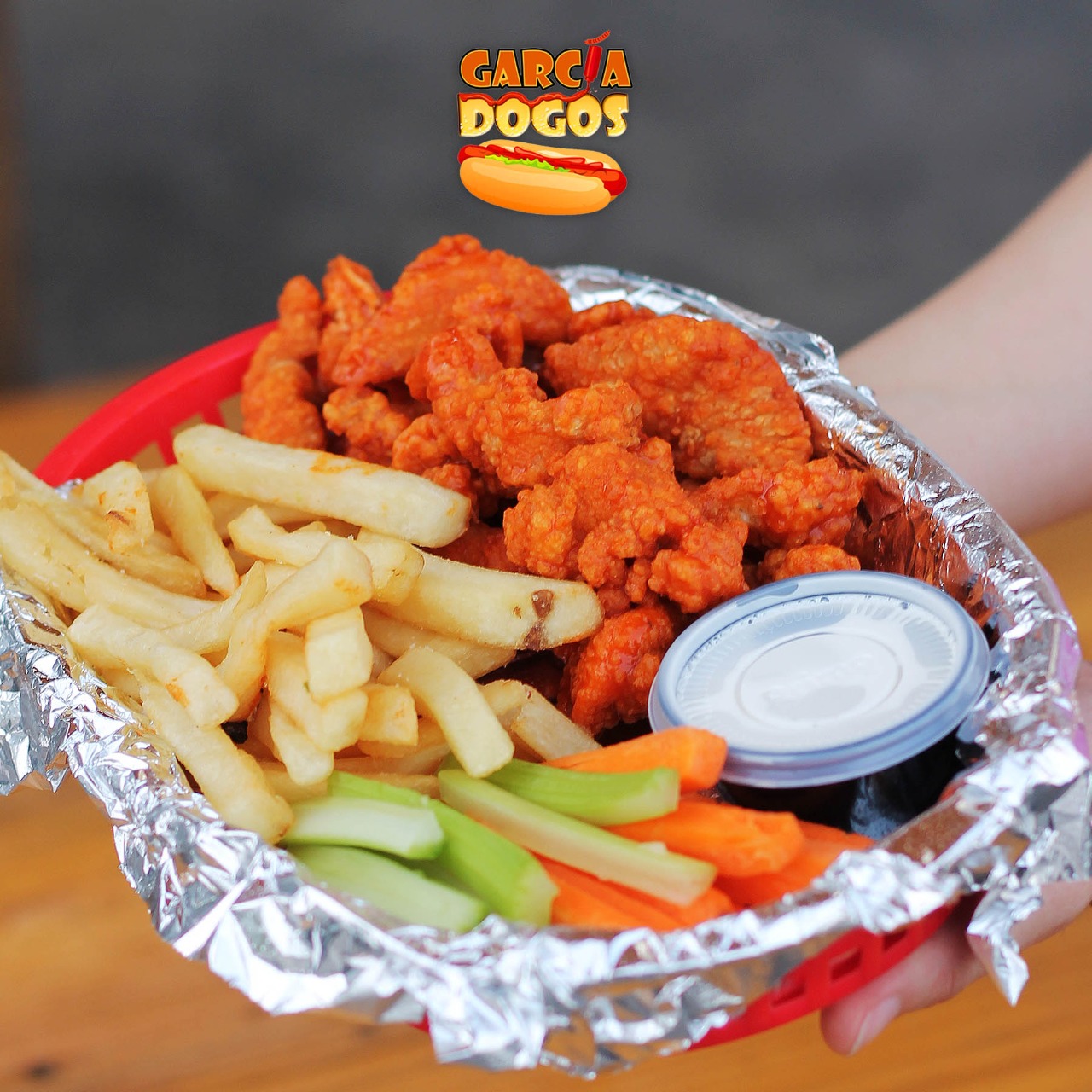 250 gr de pollo empanizado, lleva apio, zanahoria y aderezo de la casa. Elígelos en tu salsa favorita.