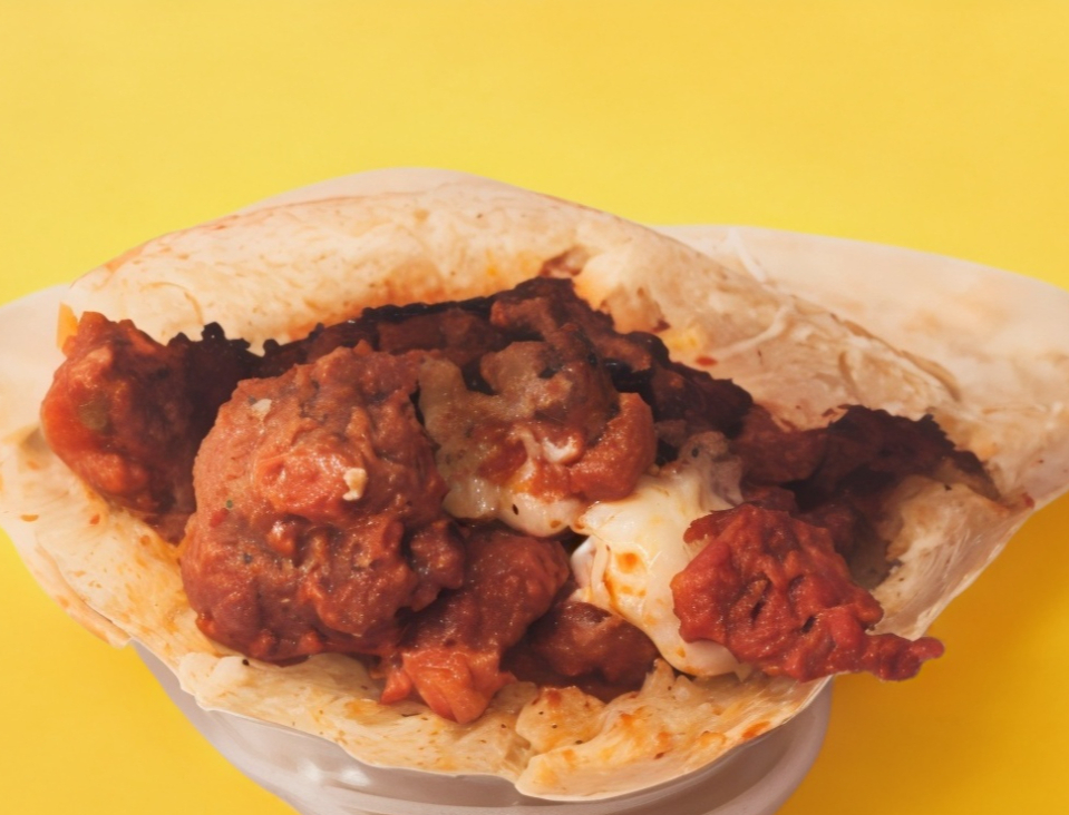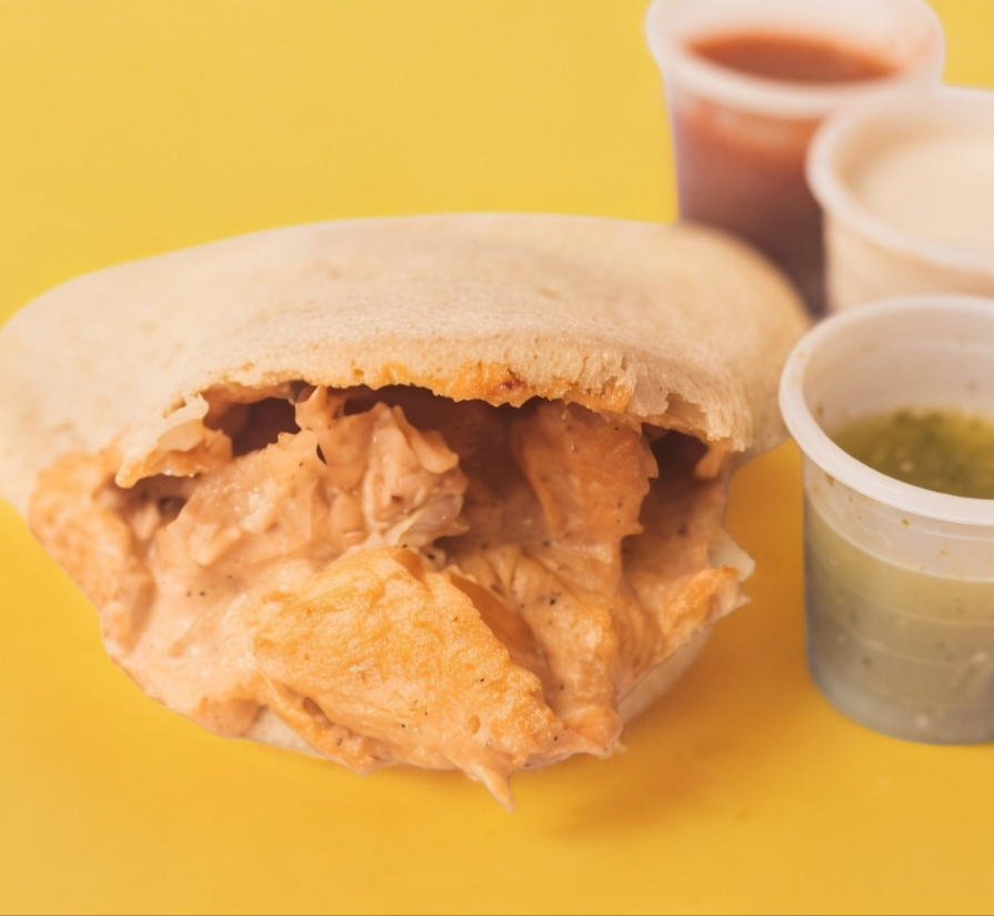 Gordita rellena de pechuga de pollo bañada en salsa de boneless (solo búfalo-redhot).