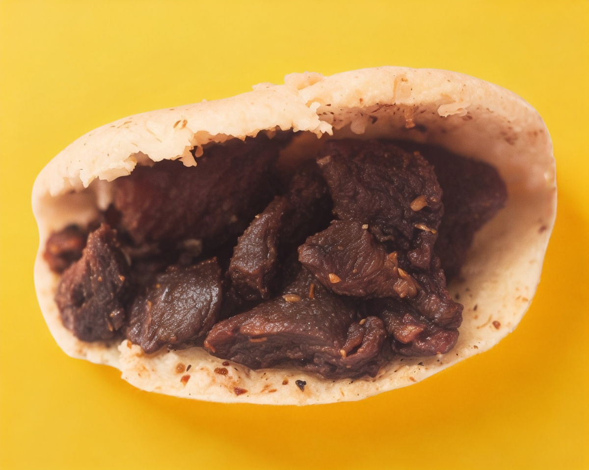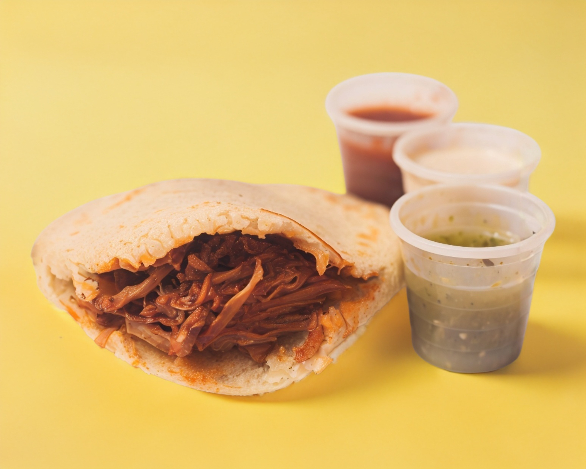Gordita rellena de chicharrón de res crujiente o prensado.