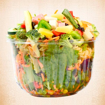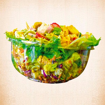Cama de lechuga, 1 porciones de proteína y 3 ingredientes de la barra fría.