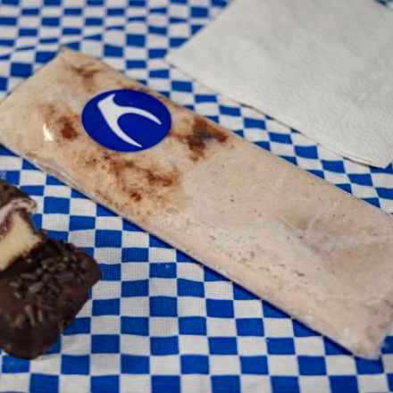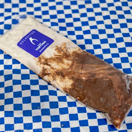 Cremoso hielito de galleta con chispas de chocolate y chocolate.