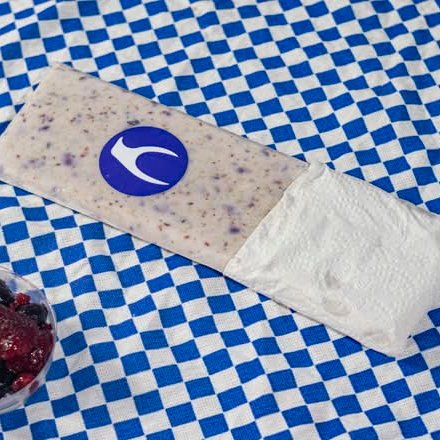 Hielito cremoso con pastel de frambuesa, mermelada de frutos rojos y trozos de frutos.