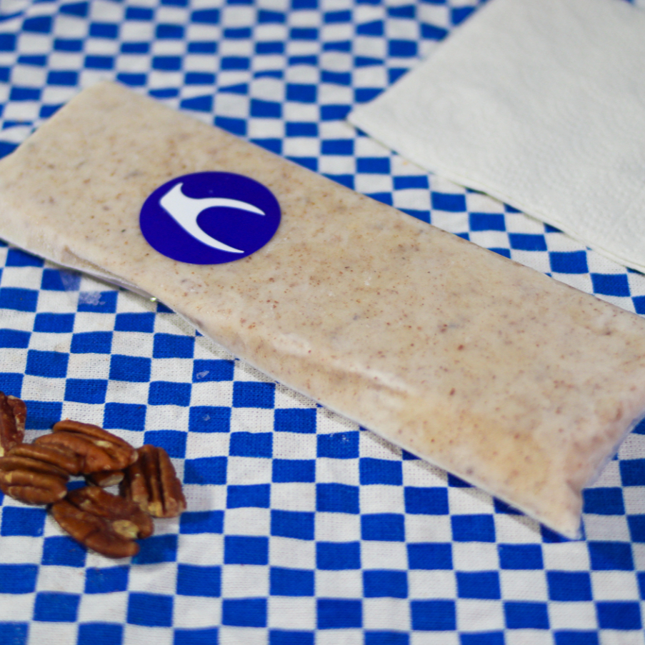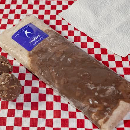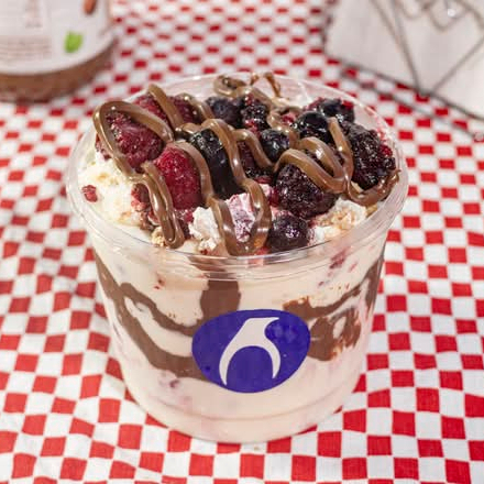 Hielito cremoso de cheesecake, con nuez, chocolate Hershey's, cajeta y crema de avellana. Contiene nueces.