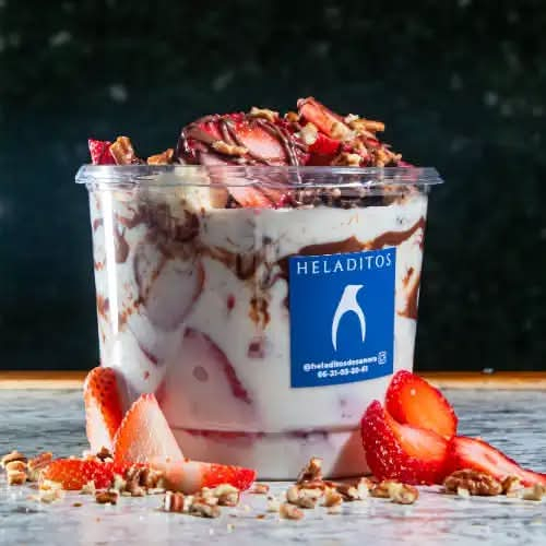 Fresas naturales con deliciosa crema de la casa, cheesecake de tortuga, nueces, crema de avellana con fresas extras.