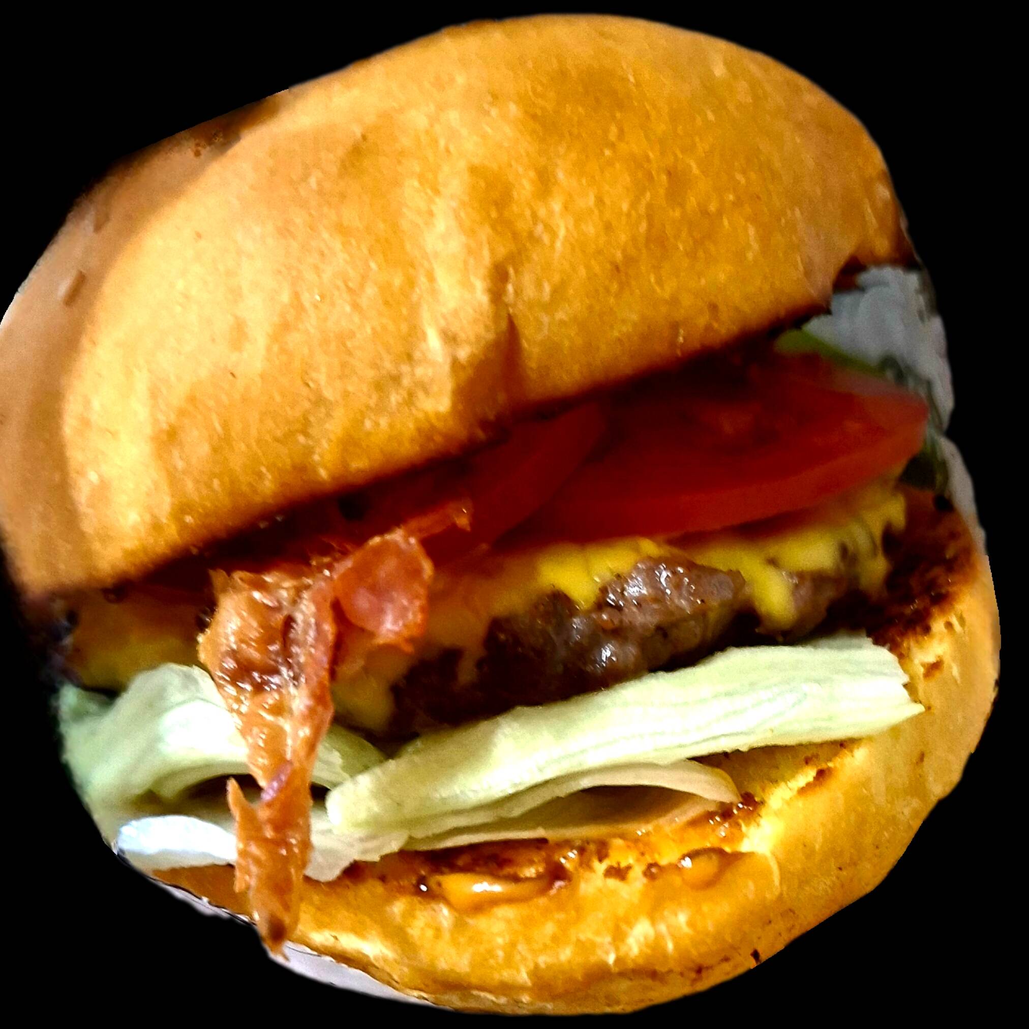 Carne con queso cheddar tocino tomate y lechuga