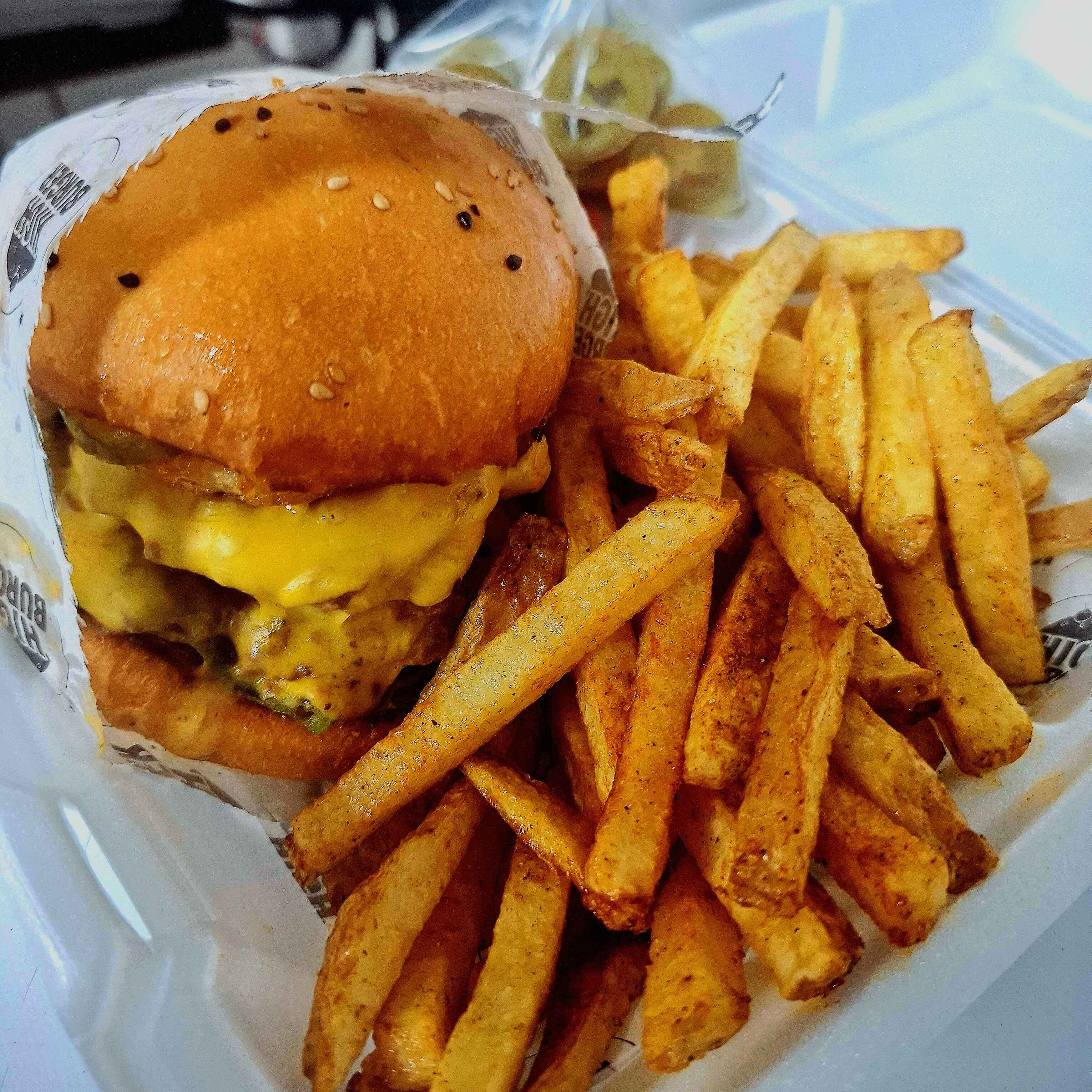 Hamburguesa normal acompañada de una mini Hamburguesa de carne y queso