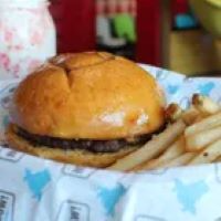 90gr. Carne o pollo, queso americano y 120gr. de papas naturales.