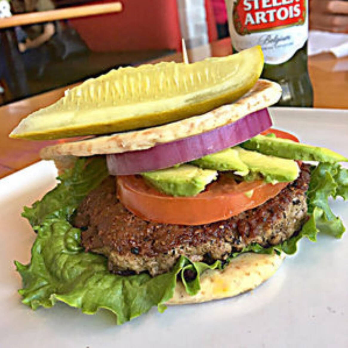 180gr. Super bun (pan sin levadura), lechuga, cebolla morada, tomate y aguacate.