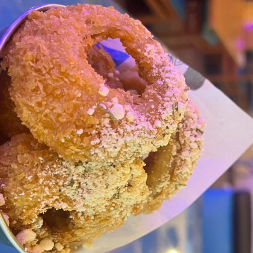 350gr. Aros de cebolla sazonados con ajo, perejil y parmesano.