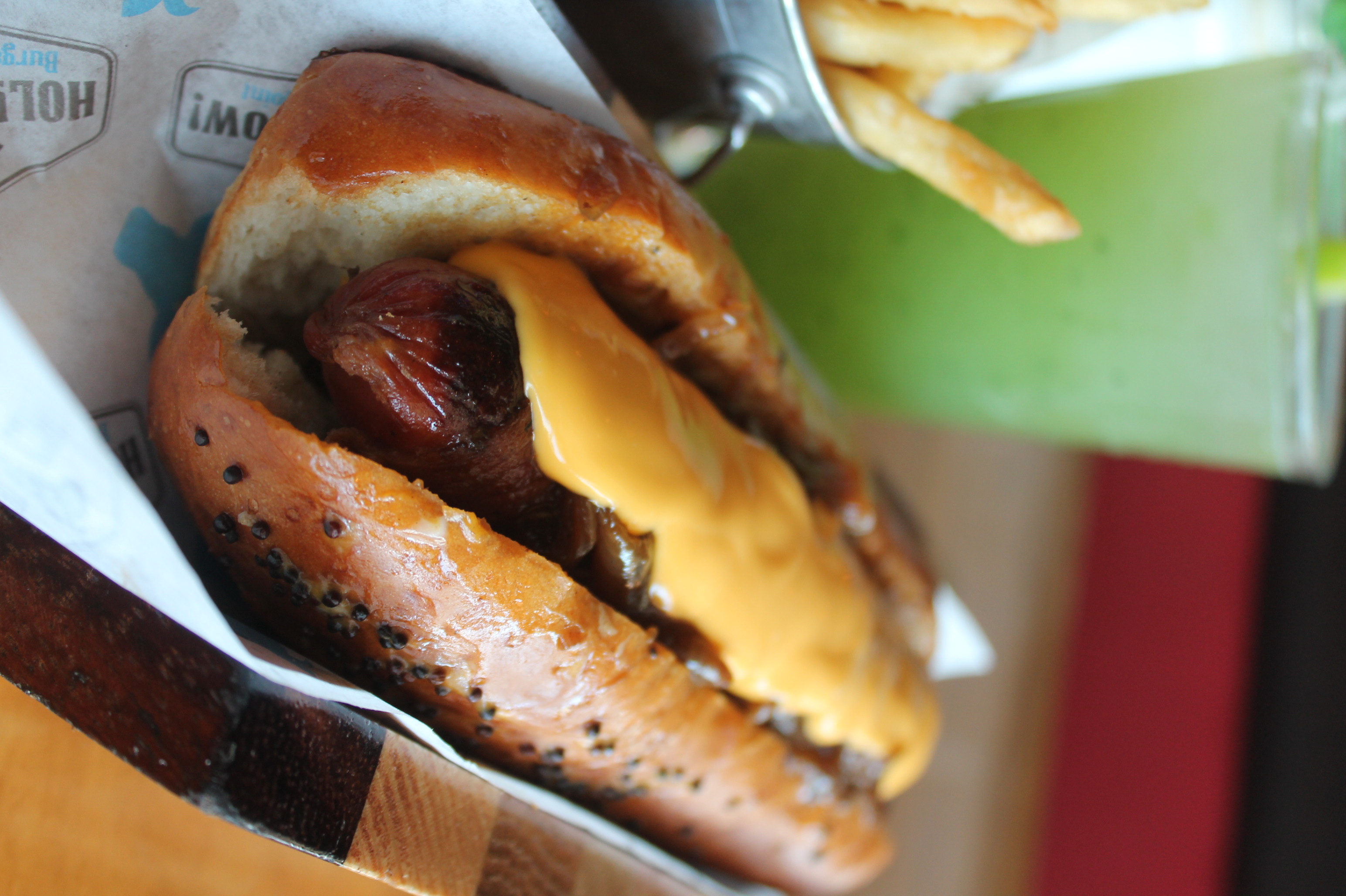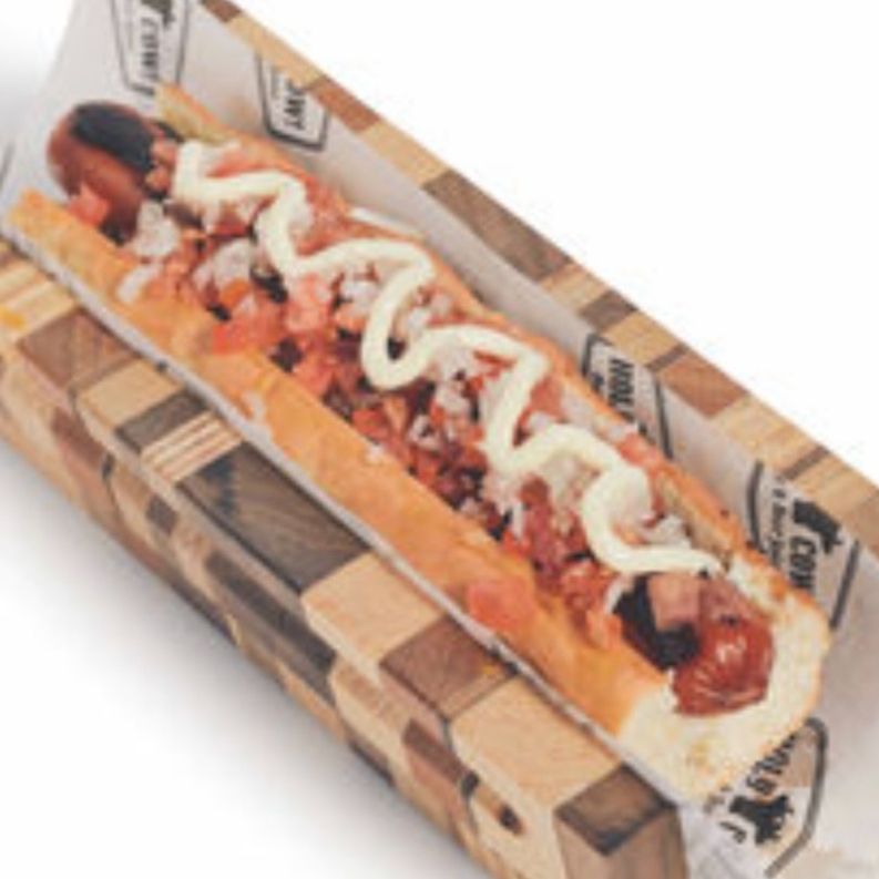 124gr. Salchicha asada envuelta en tocino, cebolla caramelizada y cheddar cheese sauce.