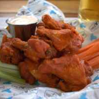 Alitas de pollo acompañadas de zanahoria, apio y aderezo ranch.