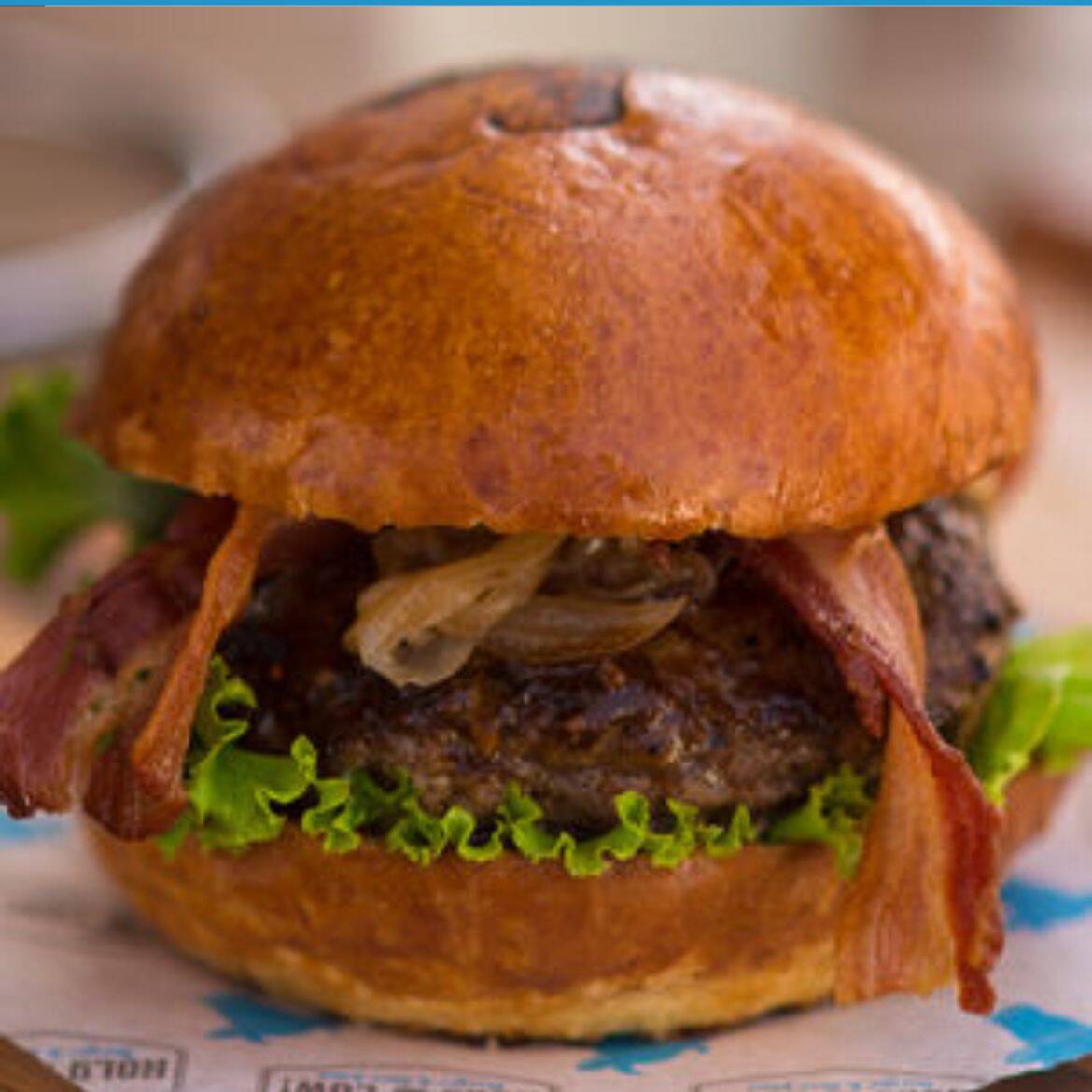 180gr. Relleno de queso cheddar (20gr), tocino, cebolla caramelizada con salsa A1, lechuga y aderezo Alioli Holy Cow!