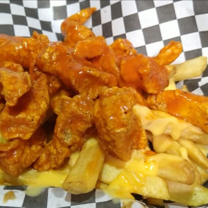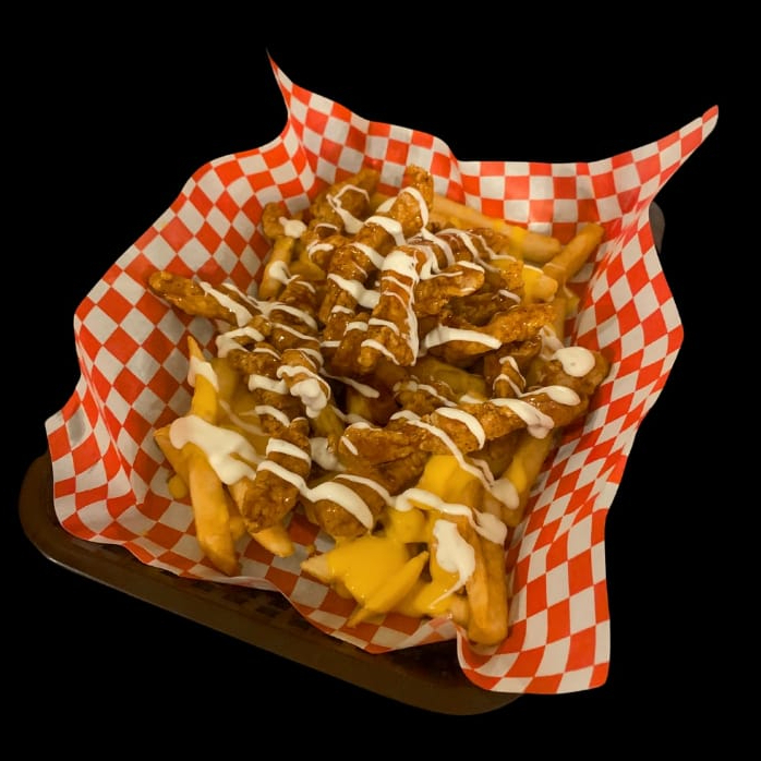 200gr boneless en la salsa de tu preferencia, 350gr papas francesas bañadas con queso cheddar acompañados de Ranch
