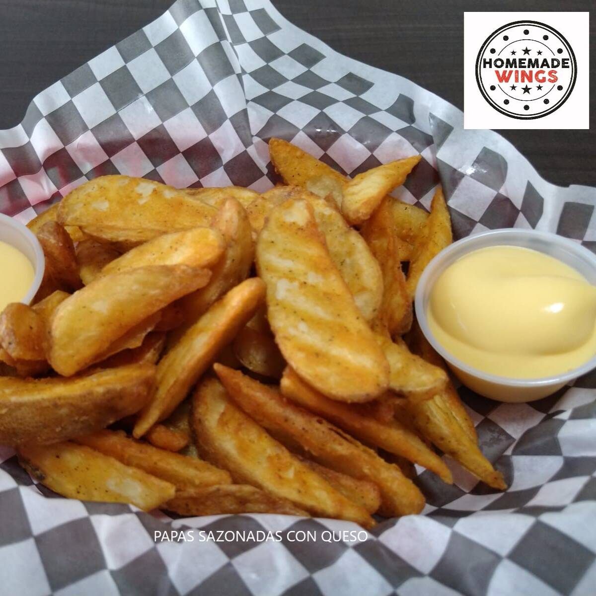 400gr de papas Sazonadas/Francesa con 4 oz de queso Cheddar aparte