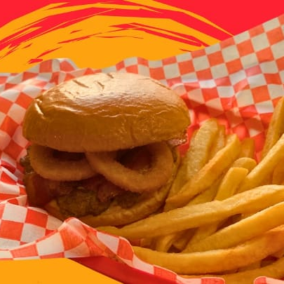 150gr carne res, salsa BBQ, pan brioche, queso americano, tocino, aros cebolla. Acompañala con papas francesas