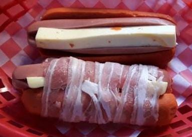 WINI PARA ASAR, QUESO AMARILLO, WINI ROSARITO ENVUELTO EN TOCINO