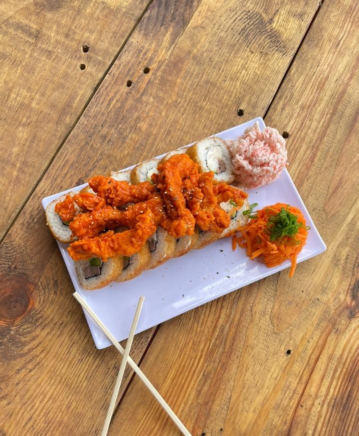 Elige tu sushi favorito con topping de boneless bañados en salsa de tu elección.