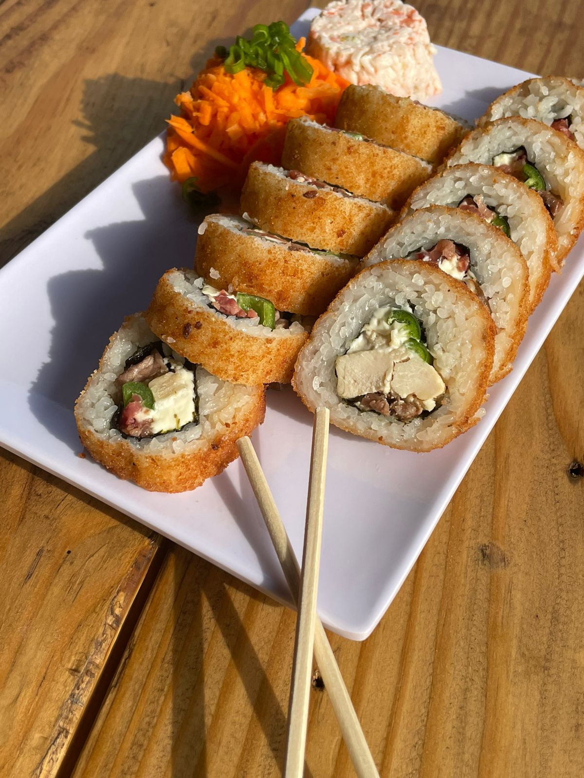 Philadelphia, aguacate, pepino, pollo, camarón y res.
