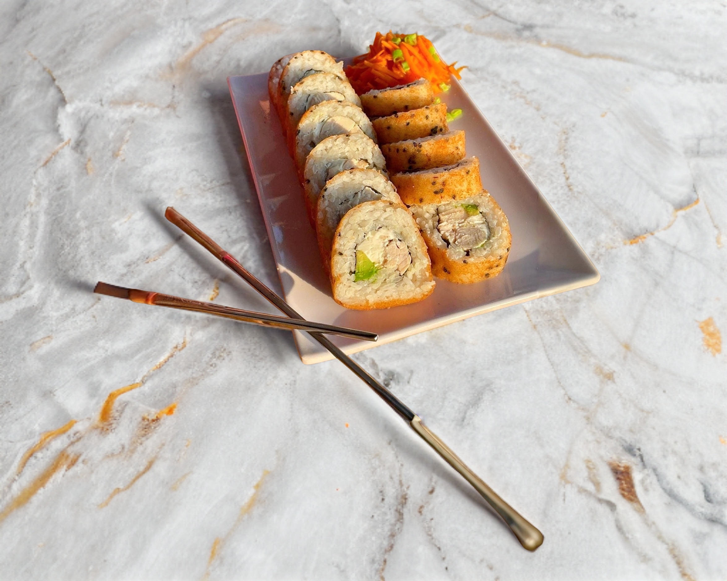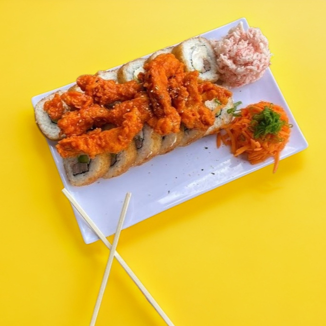 Elige tu sushi favorito con topping de boneless bañados en salsa de tu elección.
